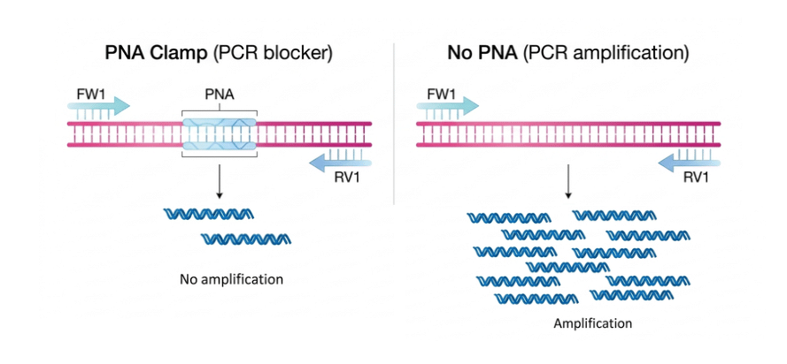 Asteraceae pPNA is designed for the targeted suppression of 16S rRNA sequences specifically within the Asteraceae family, allowing a more focused and accurate analysis. Its PNA backbone provides high thermal stability and stronger binding affinity compared to standard DNA, ensuring efficient and reliable blocking. By reducing the amplification of abundant organellar sequences, it improves the detection of low-copy nuclear genes, especially in tissues rich in chloroplast DNA. It is fully compatible with common molecular workflows, including qPCR, RT-PCR, and NGS library preparation, making it easy to integrate into existing protocols. Overall, it enhances sequencing depth and data quality by limiting non-target DNA interference. A terminal glycine can be included in the PNA structure to improve flexibility and reduce steric hindrance, helping to optimize binding without affecting specificity.